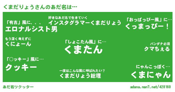 | ポケモン風あだ名 | 『クマキング』『クマダダネ』『クマセウス』『クマゴンZ』 |