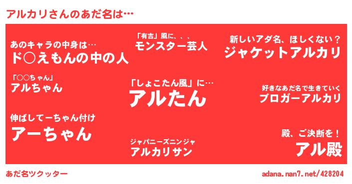 | 可愛いあだ名 | 『アルカリママ』『アルうちぇる』『ぽよアル』『アルちー』 |
