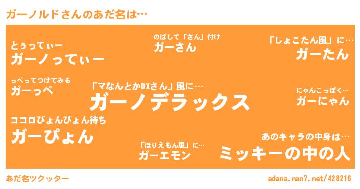 | 意味不明あだ名 | 『自称ガーノルド』『ガーノルドフォーエバー』『永久保存ガーノルド』 |