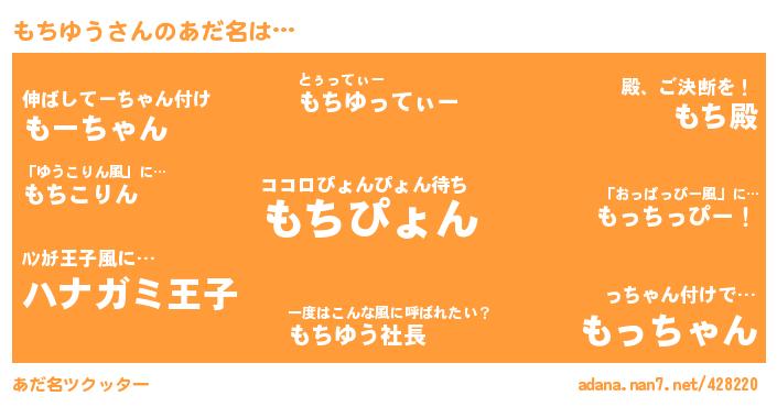 | ポケモン風あだ名 | 『モチセウス』『モーチイ』『メロモッチ』『モチユダネ』 |