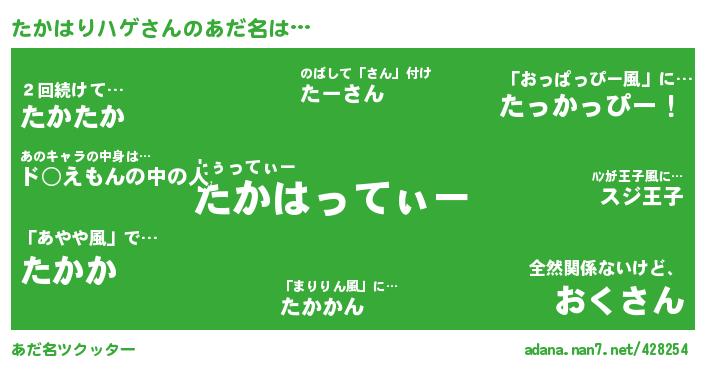 | ヒーロー風カッコイイあだ名 | 『スーパータカハリハゲ』『友情の使者たかはりハゲ』『ネオタカハリハゲ』 |