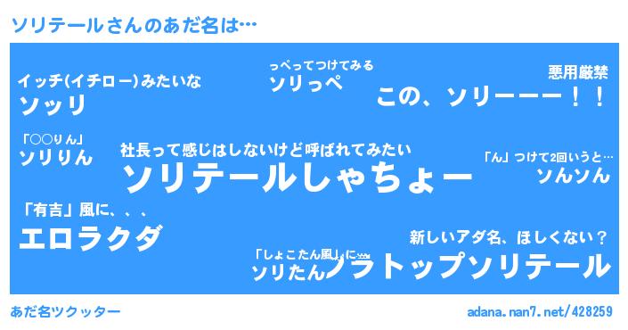 | 意味不明あだ名 | 『ソリテールフォーエバー』『永久保存ソリテール』『ペロリンソリテール』 |