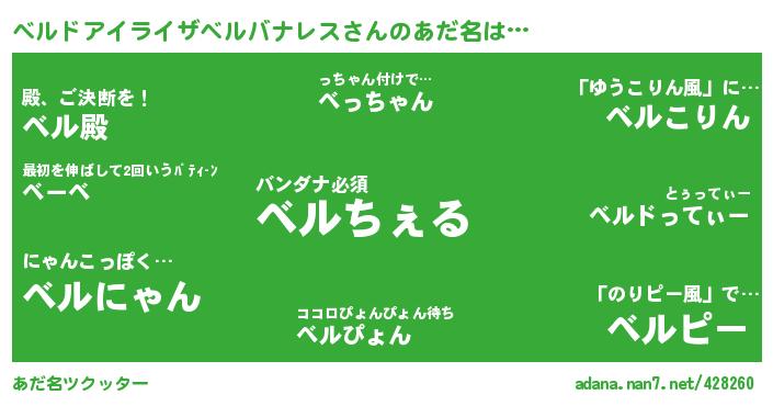 ベルドアイライザベルバナレスさんのあだ名を作成しました!