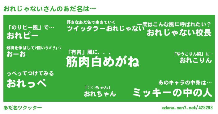 | 女子向けラノベタイトル風あだ名 | 『異世界でカフェおれじゃないを開店しました。』『闇のおれじゃない』 |