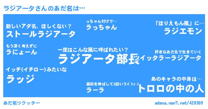 | ヘコむあだ名 | 『ラジふぇ~』『豆乳』『ラジぷりん』『ラジアータ(小並感)』 |