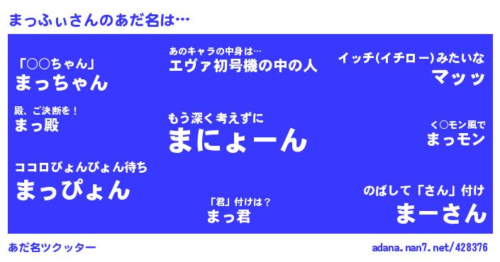 | ポケモン風あだ名 | 『ヒマッフィ』『マッキング』『マーッイ』『マッフダネ』 |