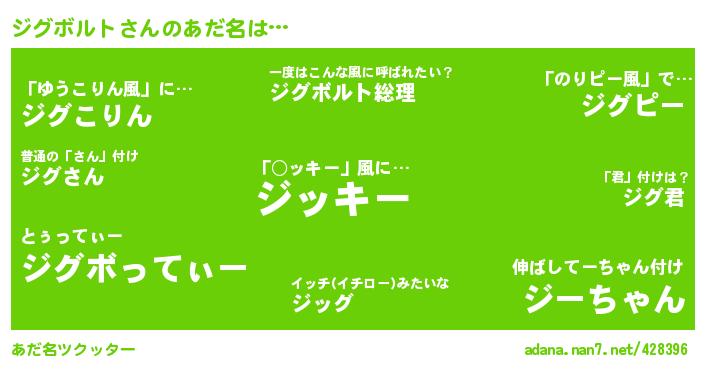 | ポケモン風あだ名 | 『ヒジグボルト』『ジグゴンZ』『ジグボダネ』『ジーグイ』 |