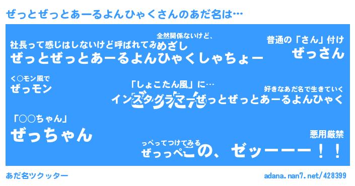 ぜっとぜっとあーるよんひゃくさんのあだ名を作成しました!