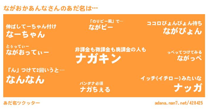 | ポケモン風あだ名 | 『ナガゴンZ』『メロナッガ』『ナガオダネ』『ナーガイ』 |
