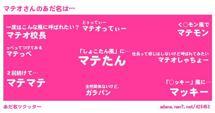 | ヒーロー風カッコイイあだ名 | 『ネオマテオ』『友情の使者マテオ』『仮面マテダー』 |