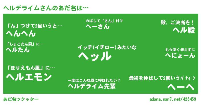 ↓あだ名「ヘルデライム」にコメントする!