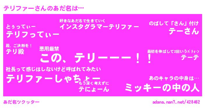 | 可愛いあだ名 | 『テリうちぇる』『テリファーママ』『テんテん』『テーみん』 |