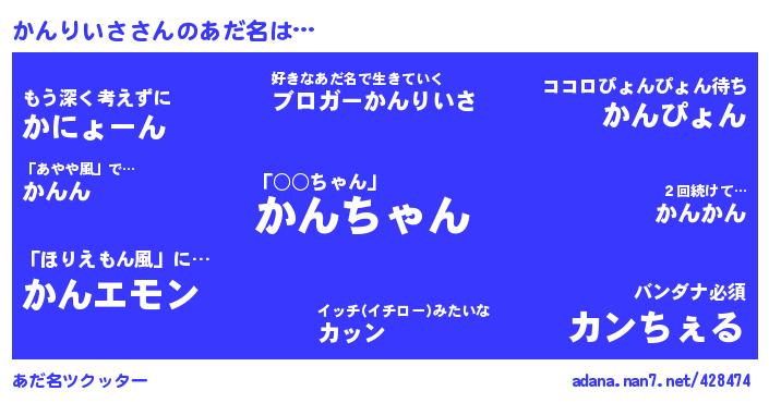 | ヘコむあだ名 | 『かんふぇ~』『豆乳』『かんぷりん』『かんりいさ(小並感)』 |