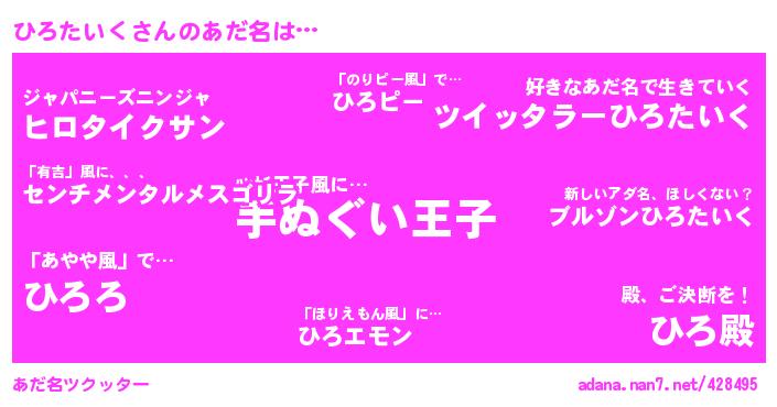 | ヘコむあだ名 | 『ひろふぇ~』『豆乳』『ひろぷりん』『ひろたいく(小並感)』 |