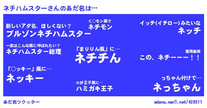 | 意味不明あだ名 | 『とにかく怪しいネチハムスター』『自称ネチハムスター』 |
