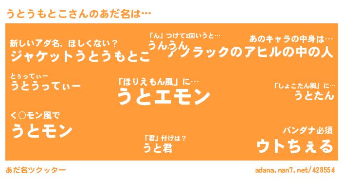 | ヒーロー風カッコイイあだ名 | 『ウルトラうとうもとこマン』『スーパーウトウモトコ』『仮面ウトダー』 |