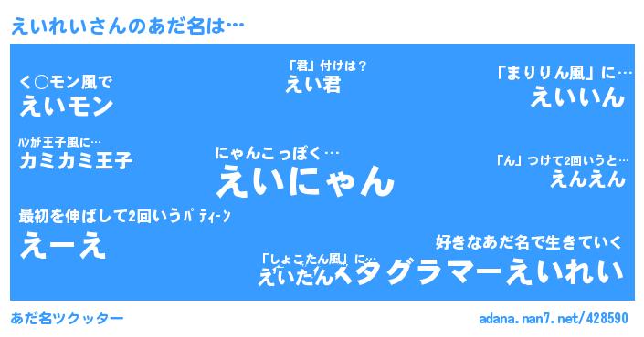 | ヘコむあだ名 | 『えいふぇ~』『豆乳』『えいぷりん』『えいれい(小並感)』 |
