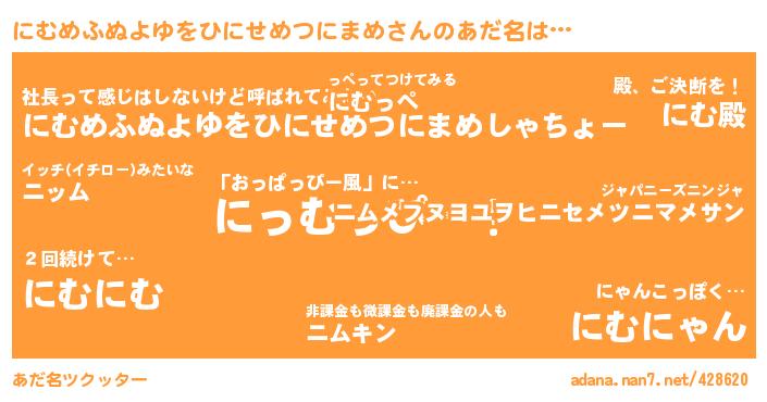 にむめふぬよゆをひにせめつにまめさんのあだ名を作成しました!