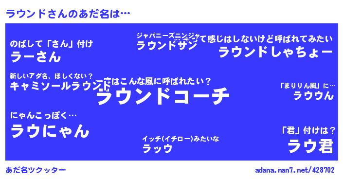 | ヘコむあだ名 | 『ラウふぇ~』『豆乳』『ラウぷりん』『ラウンド(小並感)』 |