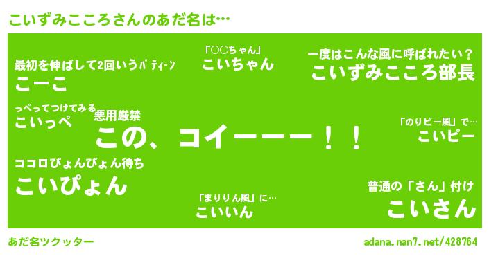 | ヘコむあだ名 | 『こいふぇ~』『豆乳』『こいぷりん』『こいずみこころ(小並感)』 |