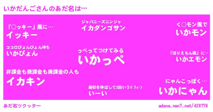 | 意味不明あだ名 | 『住所不定無職いかだんご(40歳)』『たけのこ科いかだんご属』 |