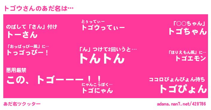 トゴウさんのあだ名を作成しました!