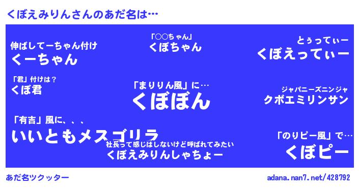 | ポケモン風あだ名 | 『クボゴンZ』『クーボイ』『メロクッボ』『ヒクボエミリン』 |