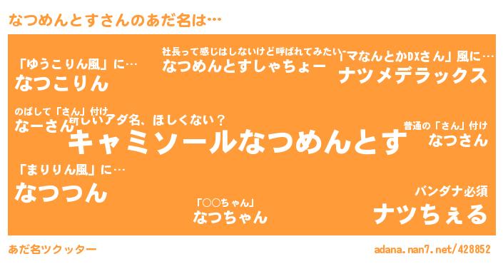 ↓あだ名「なつめんとす」にコメントする!