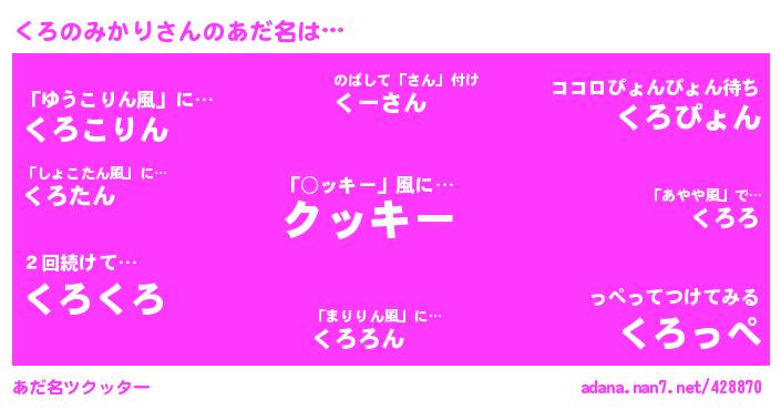 | ヘコむあだ名 | 『くろふぇ~』『豆乳』『くろぷりん』『くろのみかり(小並感)』 |