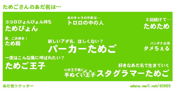| ポケモン風あだ名 | 『タメゴダネ』『タメゴンZ』『ヒタメゴ』『ゼニタメ』 |
