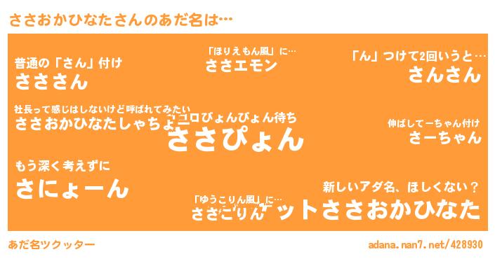 ささおかひなたさんのあだ名を作成しました!
