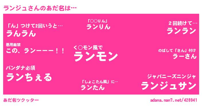 | ポケモン風あだ名 | 『ランジダネ』『メロラッン』『ランキング』『ヒランジュ』 |