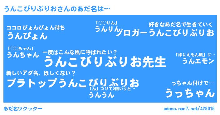 うんこびりぶりおさんのあだ名を作成しました!