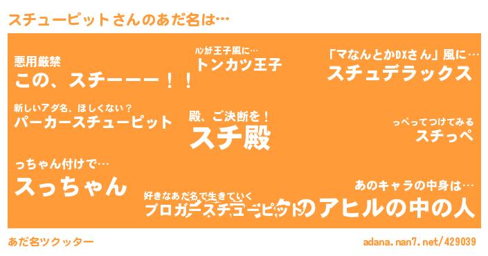 | ヘコむあだ名 | 『スチふぇ~』『豆乳』『スチぷりん』『スチューピット(小並感)』 |