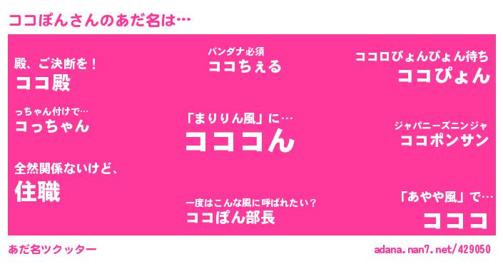 | ヘコむあだ名 | 『ココふぇ~』『豆乳』『ココぷりん』『ココぽん(小並感)』 |