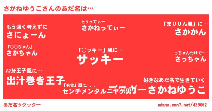 さかねゆうこさんのあだ名を作成しました!