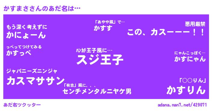 | ヒーロー風カッコイイあだ名 | 『スーパーカスマサ』『友情の使者かすまさ』『ウルトラかすまさマン』 |