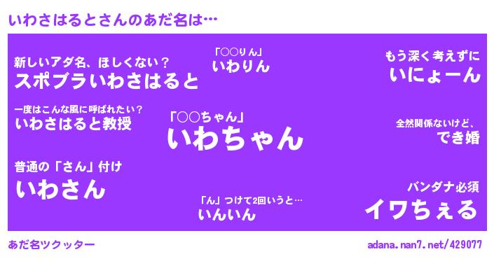 | 意味不明あだ名 | 『ニラ科いわさはると属』『いわさはるとフォーエバー』 |