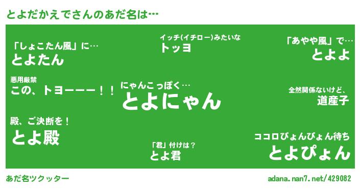 | ヘコむあだ名 | 『とよふぇ~』『豆乳』『とよぷりん』『とよだかえで(小並感)』 |