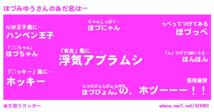 | ヘコむあだ名 | 『ほづふぇ~』『豆乳』『ほづぷりん』『ほづみゆう(小並感)』 |
