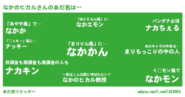 | 意味不明あだ名 | 『とにかく怪しいなかのヒカル』『眠気覚ましガムなかのヒカル味』 |