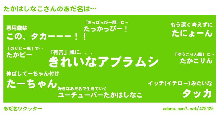たかはしなこさんのあだ名を作成しました!