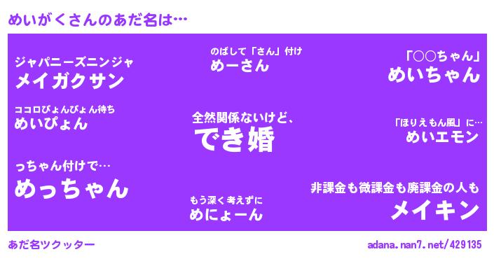 ↓あだ名「めいがく」にコメントする!