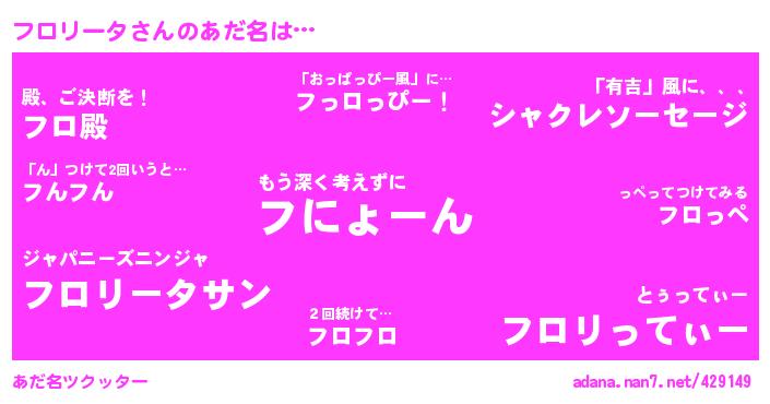 | ポケモン風あだ名 | 『ヒフロリータ』『メロフッロ』『フロリダネ』『フーロイ』 |