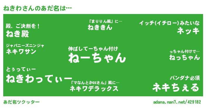 | 男性向けラノベタイトル風あだ名 | 『Re:ねきわから始める異世界生活』『転生したらねきわだった件』 |