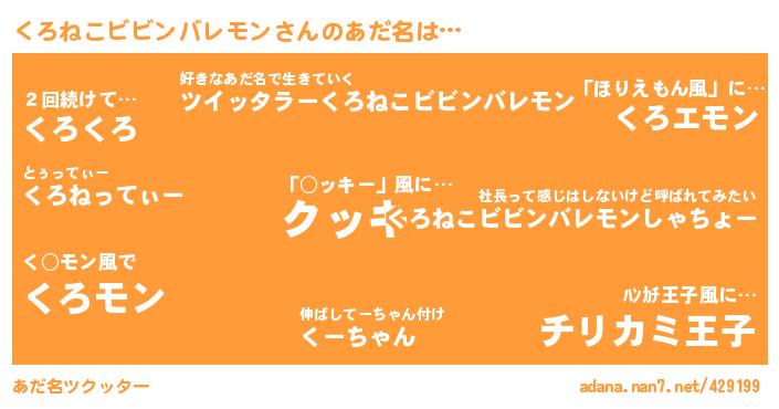 くろねこビビンバレモンさんのあだ名を作成しました!