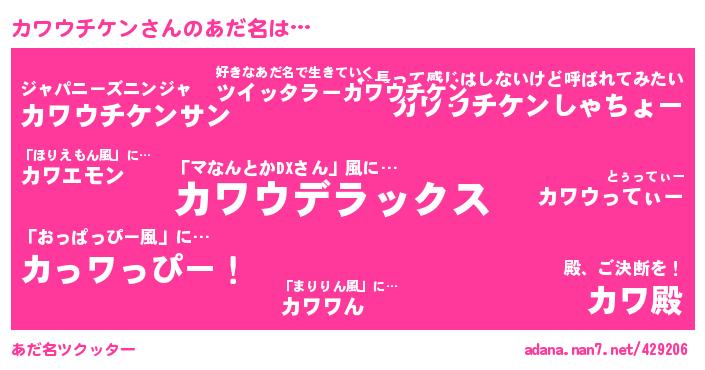 | ポケモン風あだ名 | 『ゼニカワ』『カックウザ』『カワセウス』『カワキング』 |