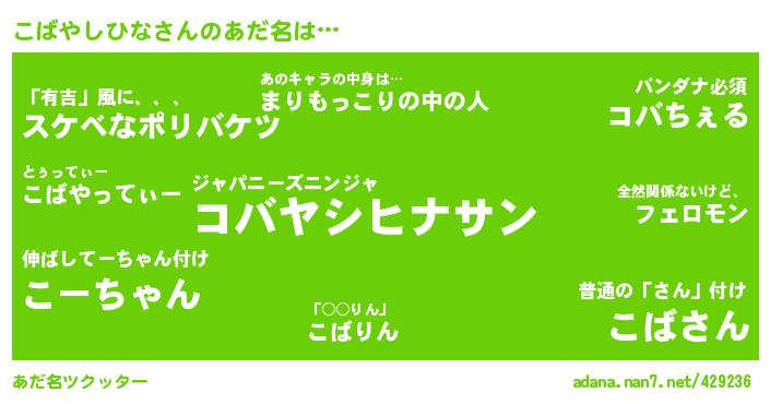↓あだ名「こばやしひな」にコメントする!