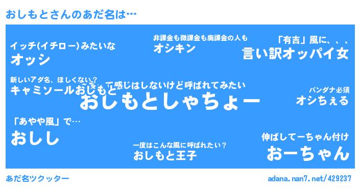 | ポケモン風あだ名 | 『オシチュウ』『オーシイ』『メロオッシ』『オシモダネ』 |