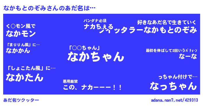 | ポケモン風あだ名 | 『ナカチュウ』『ナカモダネ』『ヒナカモトノゾミ』『ナカセウス』 |